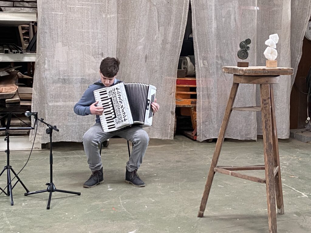 Na vernisáži zahrají žáci zdejší SZUŠ Školy pro radost pod vedením paní ředitelky Terezy Toráčové a svá díla také vystaví někteří žáci výtvarných oborů téže školy.