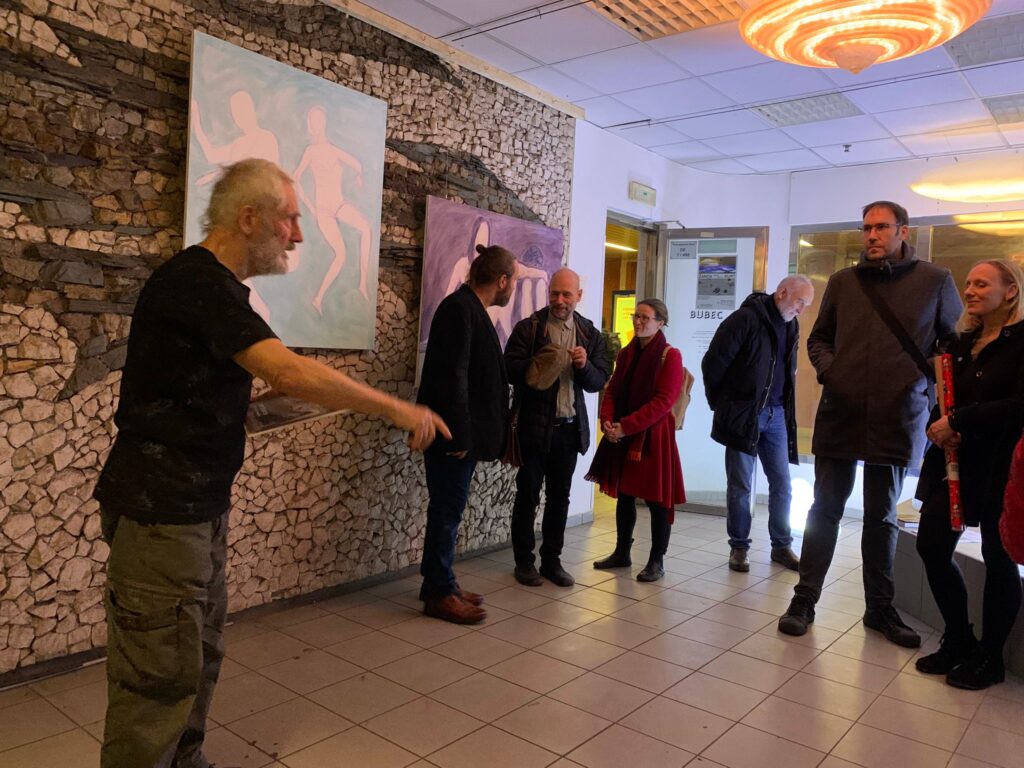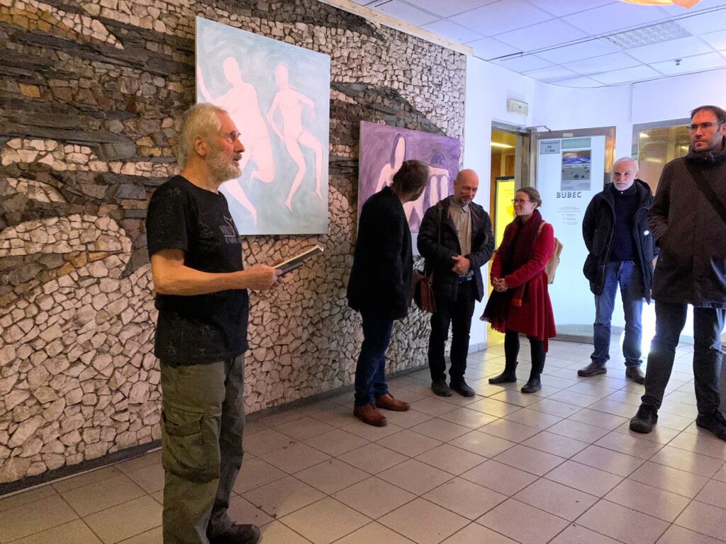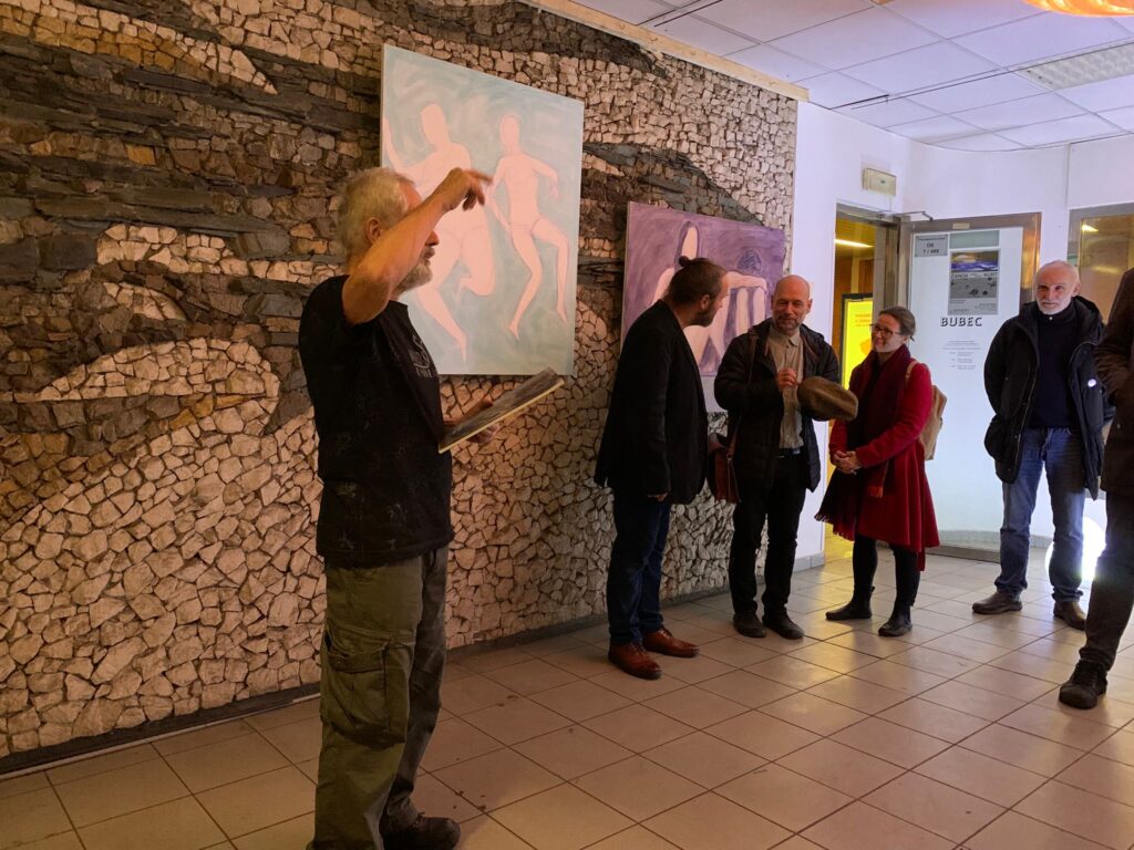…Žanda bydlí v Řeporyjích pod kopcem, na kterém je Bubec. Kurt zase kousek výš tady, nad metrem Dejvická, kde je Bubec taky. Dobré místo aby se tu potkali. Žanda se světly, která trošku laškují, Kurt s plátny na kterých laškují děvčata ve vodě. Možná to setkání potěší i ty, kteří půjdou kolem nebo si tu dají pizzu, a budou se mít při tom na co dívat. Tak si to užijte, ať se to líbí nebo ne.